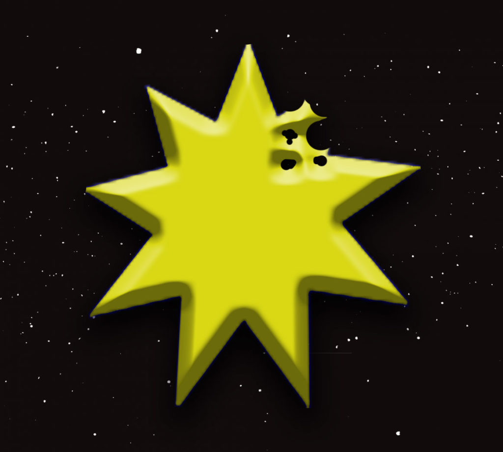 Except that as soon as the box was solved, the satellite started broadcasting and melted from energy overload. Another ship approached – a yellow ship shaped like a nine-pointed star, but one of the points was broken.
