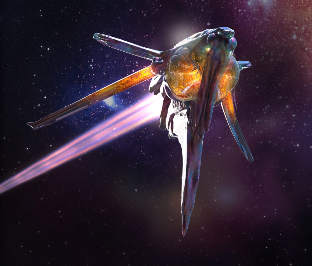 After much deliberation, and mainly because of Sergei’s bloodlust, we decided to join the omo taskforce. They gave us teardrop-shaped rifles which can fire radioactive particles and offered very little time to train, before the entire fleet must jump simulatanously. They also gave us two of their small drone-ships to control.