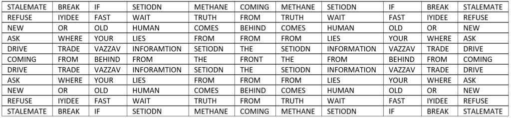 We tried to communicate, but Chmaa warned us that communication with vazzav is nearly impossible, they have a different concept of time and sequence. They sent us this matrix: