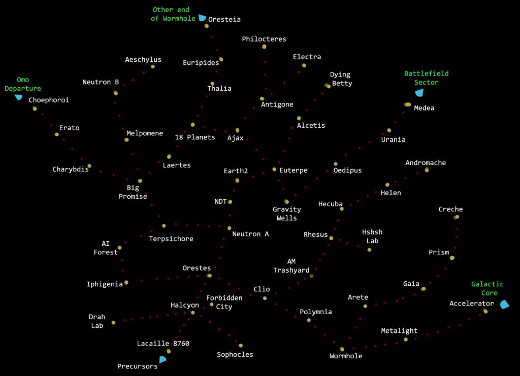 We docked on the same station, called Halcyon station, and the Chimera quickly disengaged and jumped away, but we were too distracted. Kanisha offered human food, a warm shower and other human comforts to our weary crew. She let us use our observatory in the Nancy Wake and then told us the names of all the nearby systems, as the humans call them: